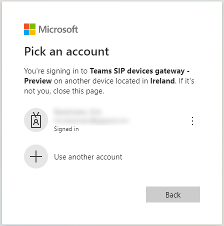 - Click on Next and select your Microsoft account.