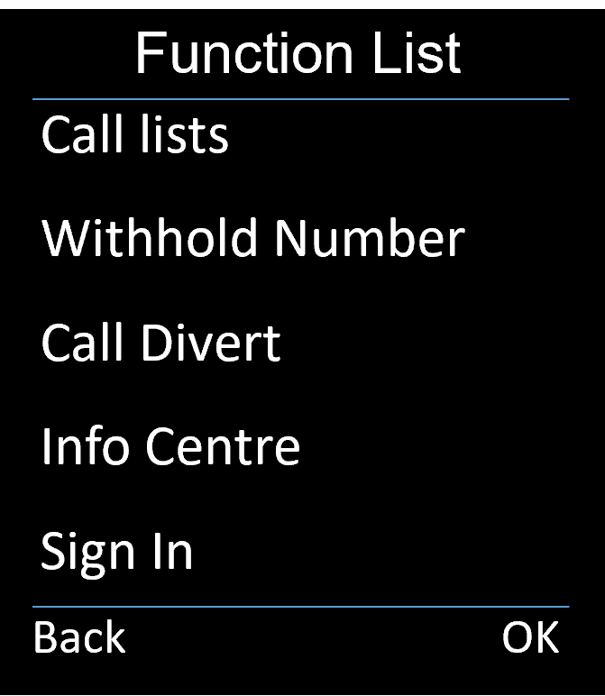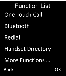 - On the handset, long-press on the left or right softkey to open the Function List