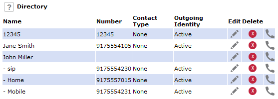 The directory is the built-in directory of the phone. It can hold up to 1000 entries. Entries can be added and edited on the phone and on the web interface.