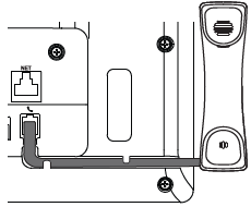 Plug the long uncurled end of the 4P4C handset cord into the connector labelled , and connect the short one to the handset.