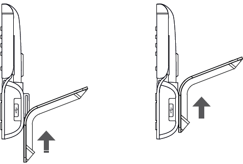 1. Place the top of the grooves on the footstand below the slideguides on the back of the phone.